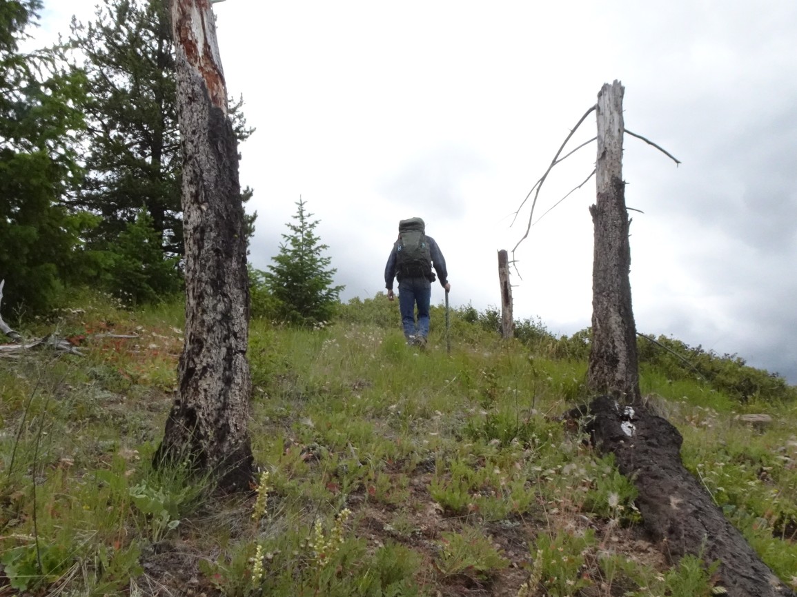 This is an easy, pleasant summit. The road is suitable for most vehicles and the hike up is through an open meadow/clearcut.