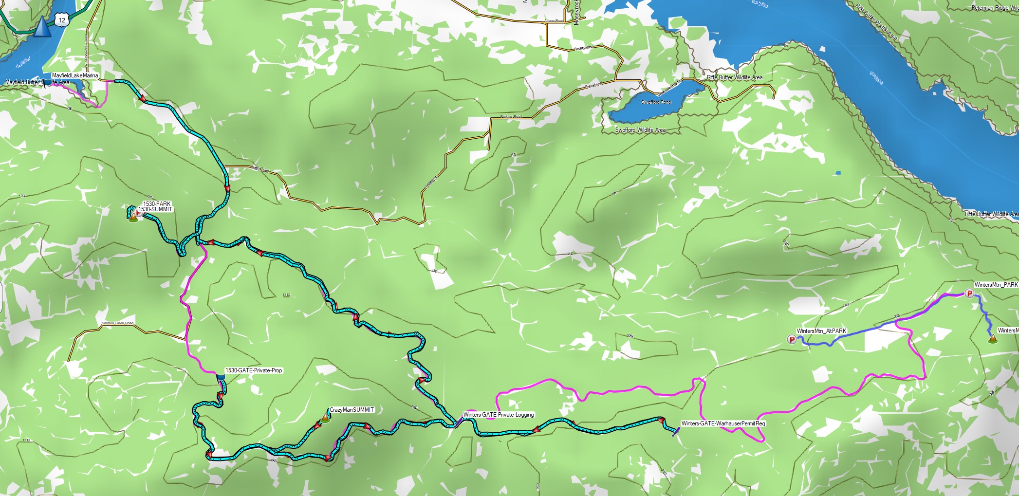 I attempted Winters Mountain on June 29th 2025 and ran into closed gates. There is an old trip report on Peakbagger for this summit but it looks like Weyerhaeuser has now closed access to recreational use permit holders. You can do Crazy Man Mountain and 1570 (W7W/PL-152) as easy drive ups from the Salmon Creek and "Camp Nine" roads.  I posted trip reports for those to PNWSota.