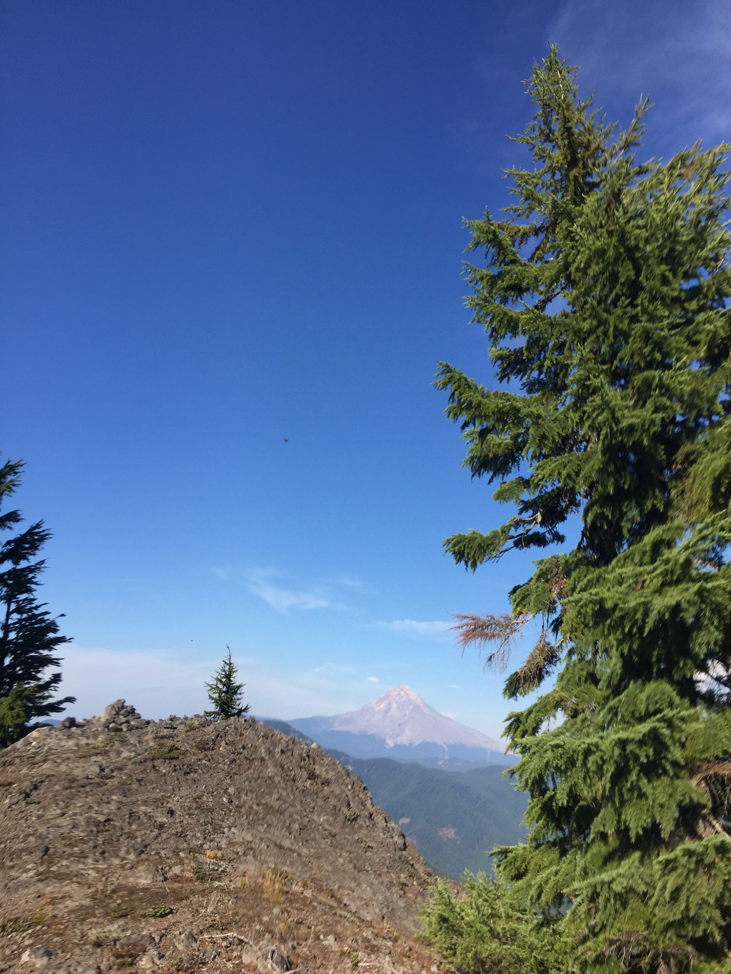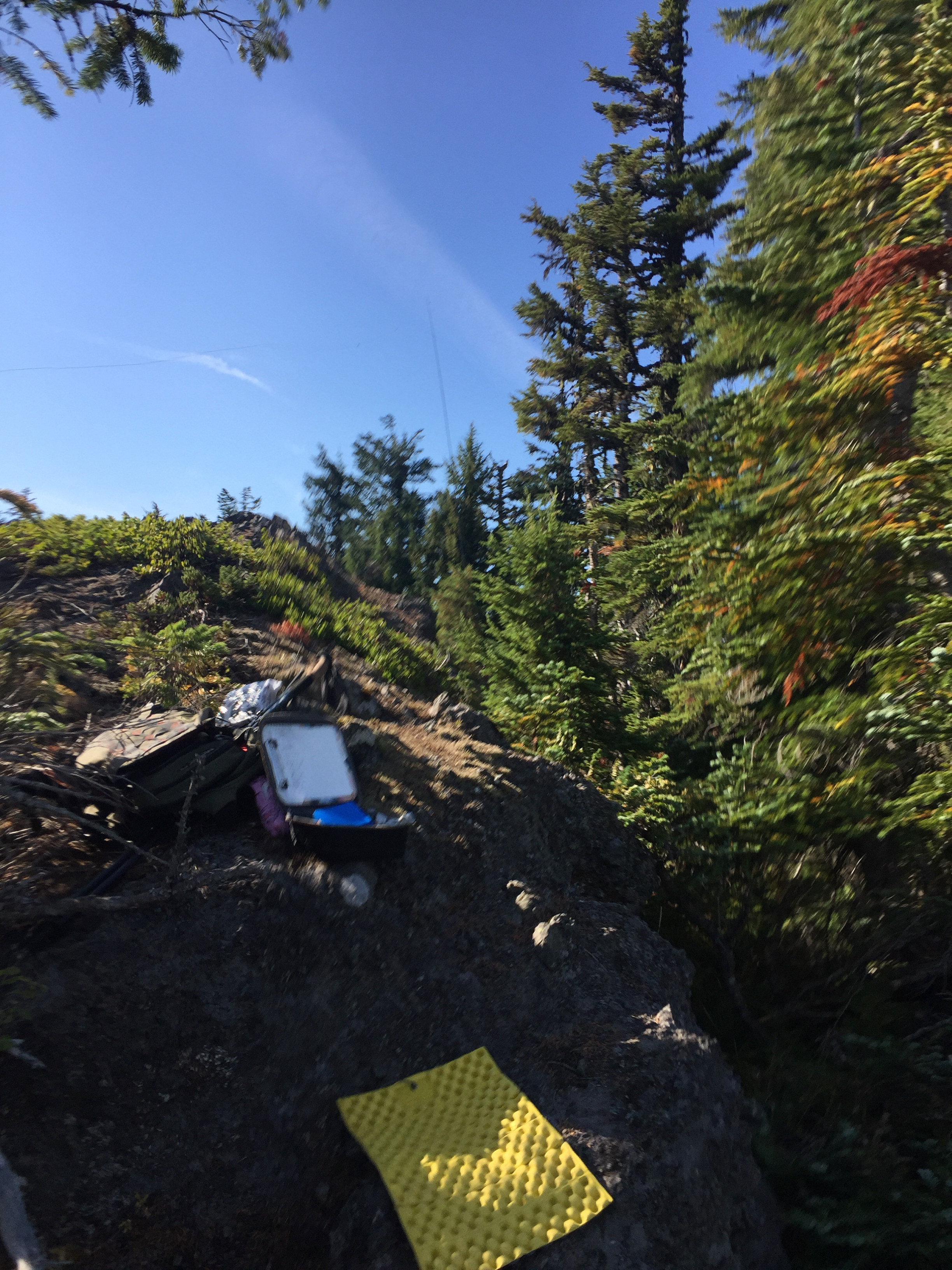 The summit is spacious with both open and forested areas, with steep dropoffs and expansive views of Mt Hood and the surrounding area. Many options for antennas.