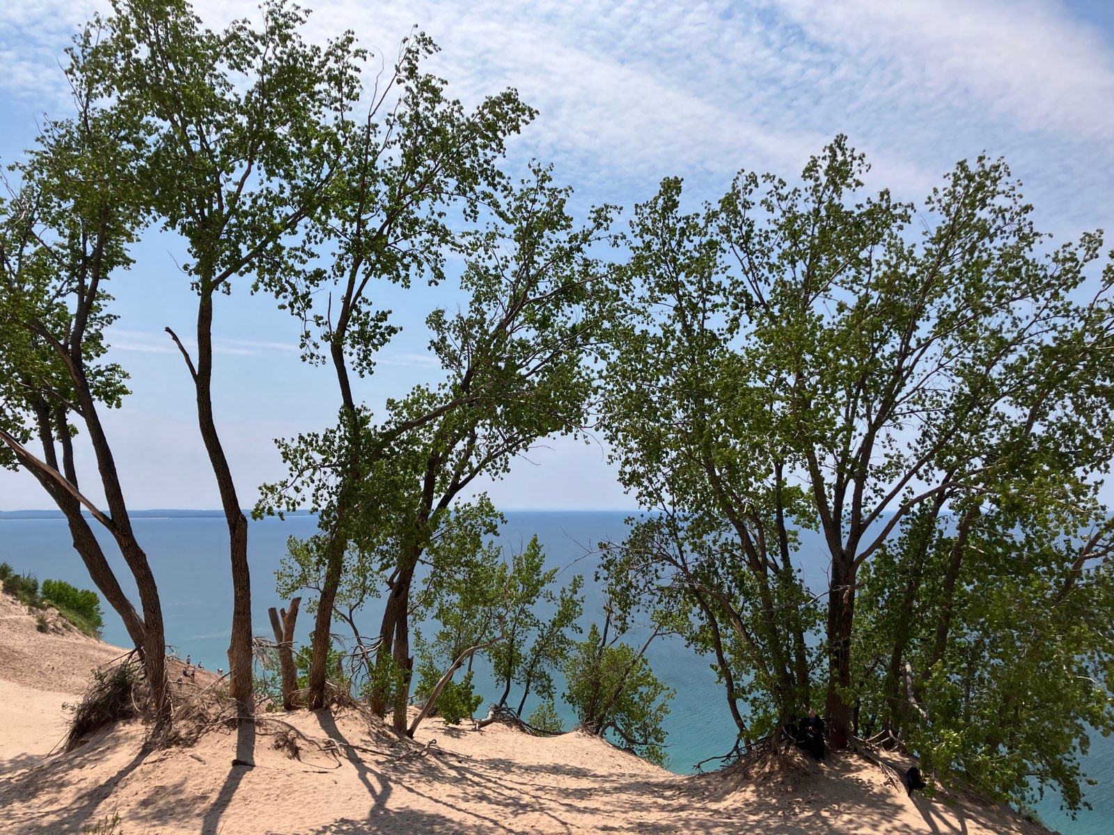 Take M-109 off of M-22 and check in at the entrance station - this is a fee park. I recommend getting a copy of the Lakeshore map to follow the one-way Pierce Stocking Scenic Drive and the numbered features.