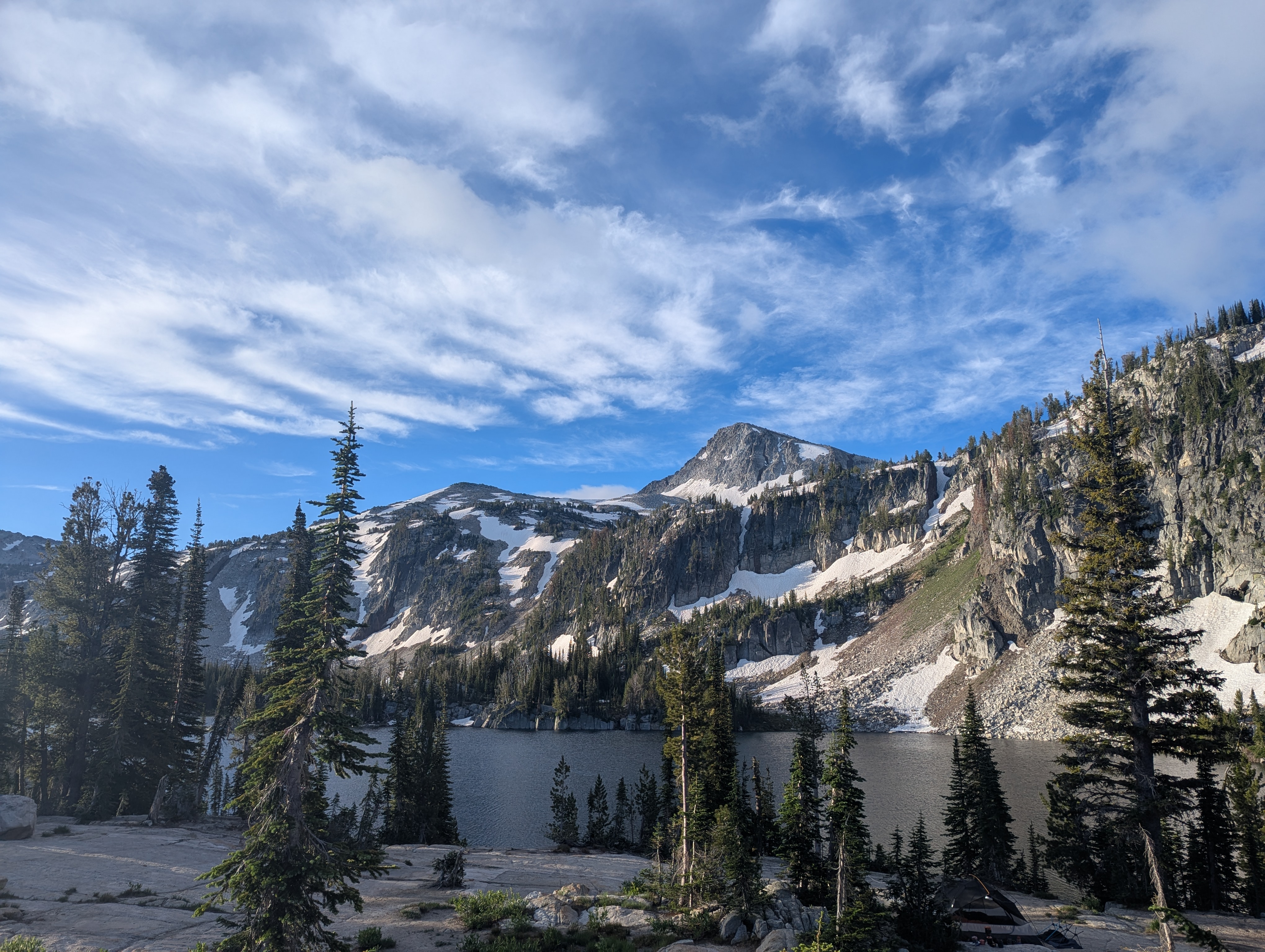 Another point to note is that earlier in the summer it's way buggier. I was actually out there in September 2019 before I was a ham, and mosquitos were maybe an afterthought. This July trip our permethrin soaked clothes couldn't quite keep them off us. DEET was the only true defense. That said, it's absolutely breathtaking country and a very approachable summit as long as you don't mind a long steep walk. And if you like the taste of brook trout, I recommend a blue and silver 1/4 ounce kastmaster.