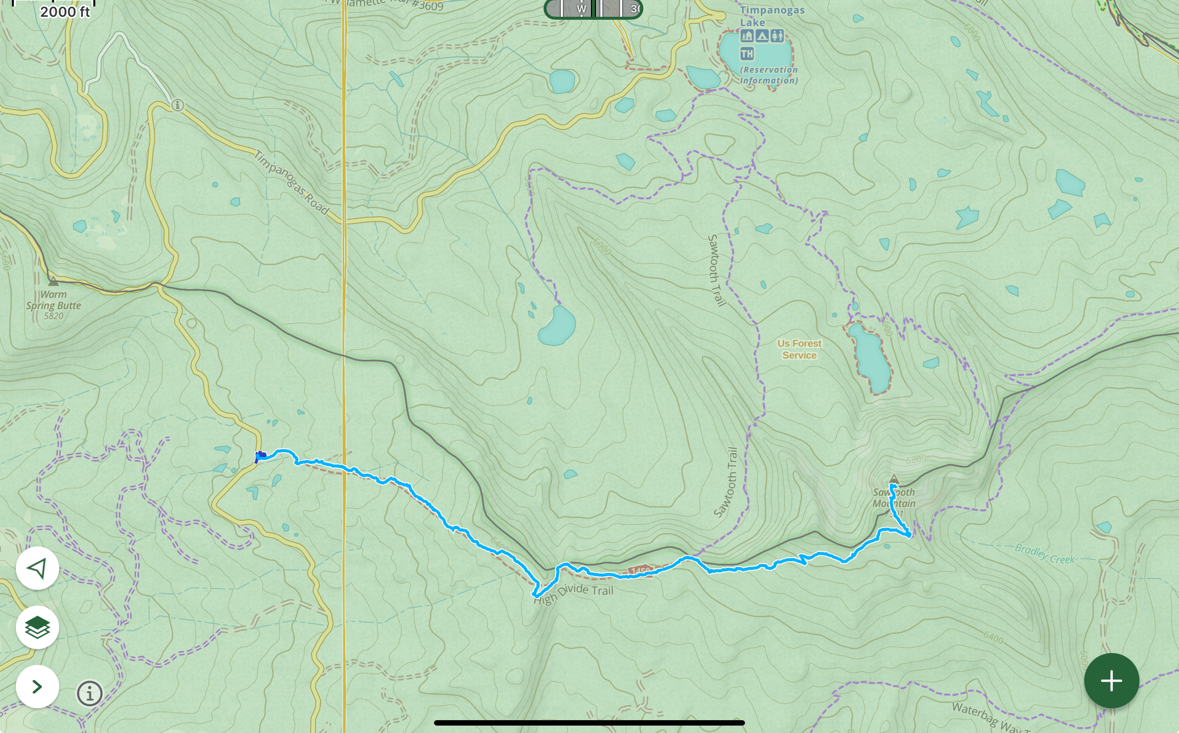 Hiking towards sawtooth on the High Divide trail, it was quite hard to follow the trail and we lost it several times. It's often through pretty open forest, and the trail just kinda fades into the background. This added about a mile overall to our journey, though we were able to find the trail again each time, with the aid of a GPS app and finding local clues (blazes, flagging, sawn logs). On the way back the trail was much easier to follow. I have uploaded that track to sotamaps for anyone wishing to take this route to follow. Once you get to the Windy Pass trail it's very easy to follow the trail all the way to the summit.