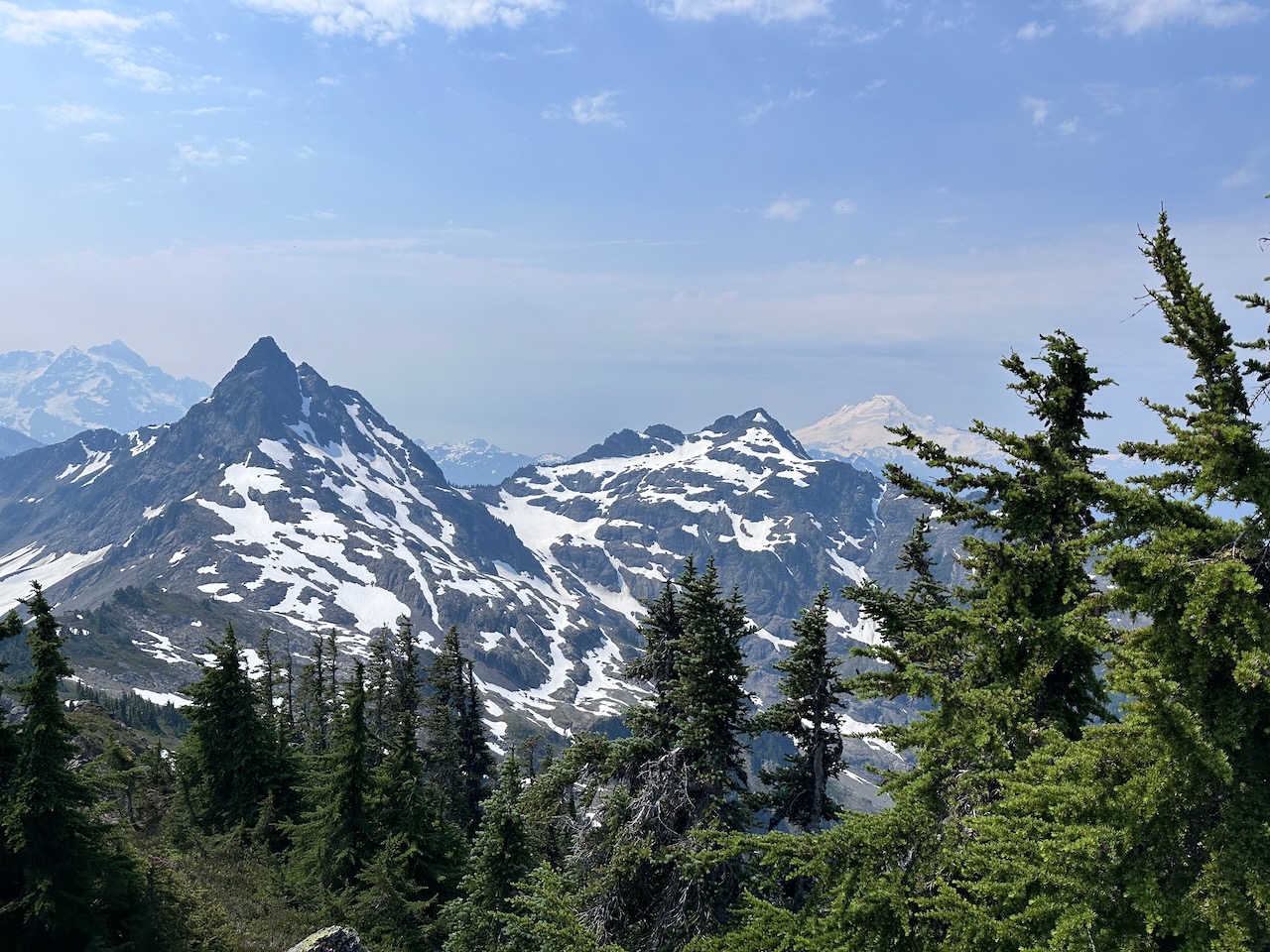 Summit Conditions: The summit offers a 360ยบ view of the North Cascades, including East and West Goat and the prominent peaks of Shuksan and Baker.