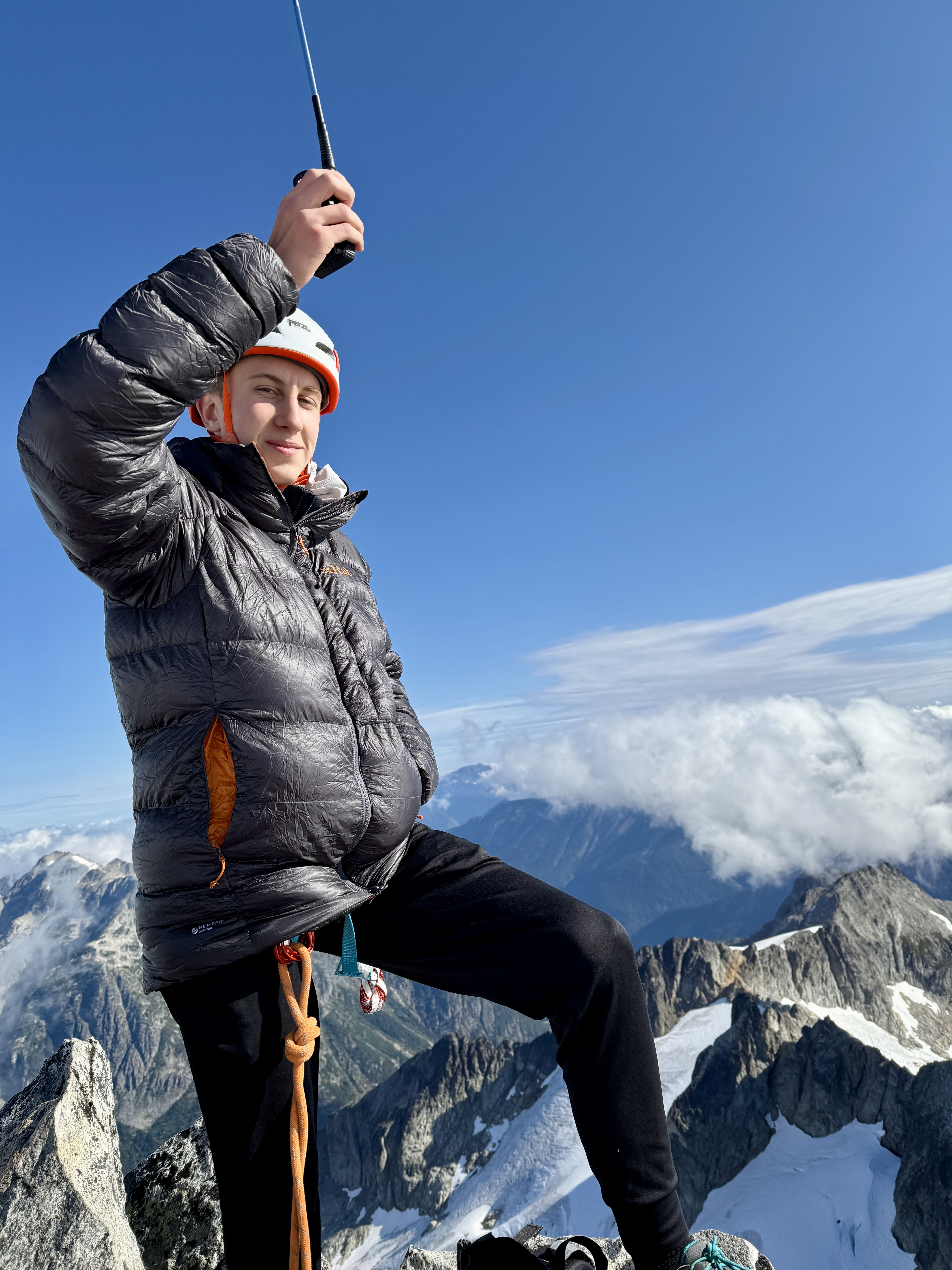 Forbidden Peak is a ten point summit that is one of the most popular rock climbing objectives in the Cascade mountains. The summit can be approached from three ridges, with the West Ridge being the easiest and most frequently climbed. The West Ridge is famous for high-exposure, high quality 4th and easy 5th class climbing and a crux at 5.6. It is listed in the 1979 climbing guidebook "Fifty Classic Climbs of North America" by Steve Roper and Allen Steck. We were guided by Mike Elges, an AMGA Certified and IFMGA Licensed Mountain Guide, to activate the summit for the first time.